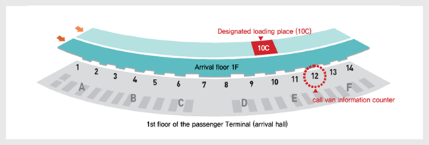 http://www.airport.kr/iiacms/pageWork.iia?_scode=C1203060000" Tel: 82-32-743-0828 E-mail address: airportcallvan@daum.net Hours of Operation : 09:00 ~ 20:00 Maximum capacity : 5 people , Maximum 8 pieces of Luggage Designated loading place : 1st floor of the passenger Terminal 10C Fare to Jeonju: 280,000 won + Toll fee: about 20,000 won |