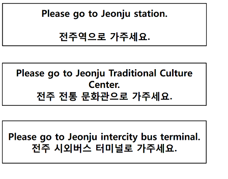 Gimhae international airport station -> Sasang station(Exit 3) -> Busan west bus terminal -> Jeonju bus terminal |